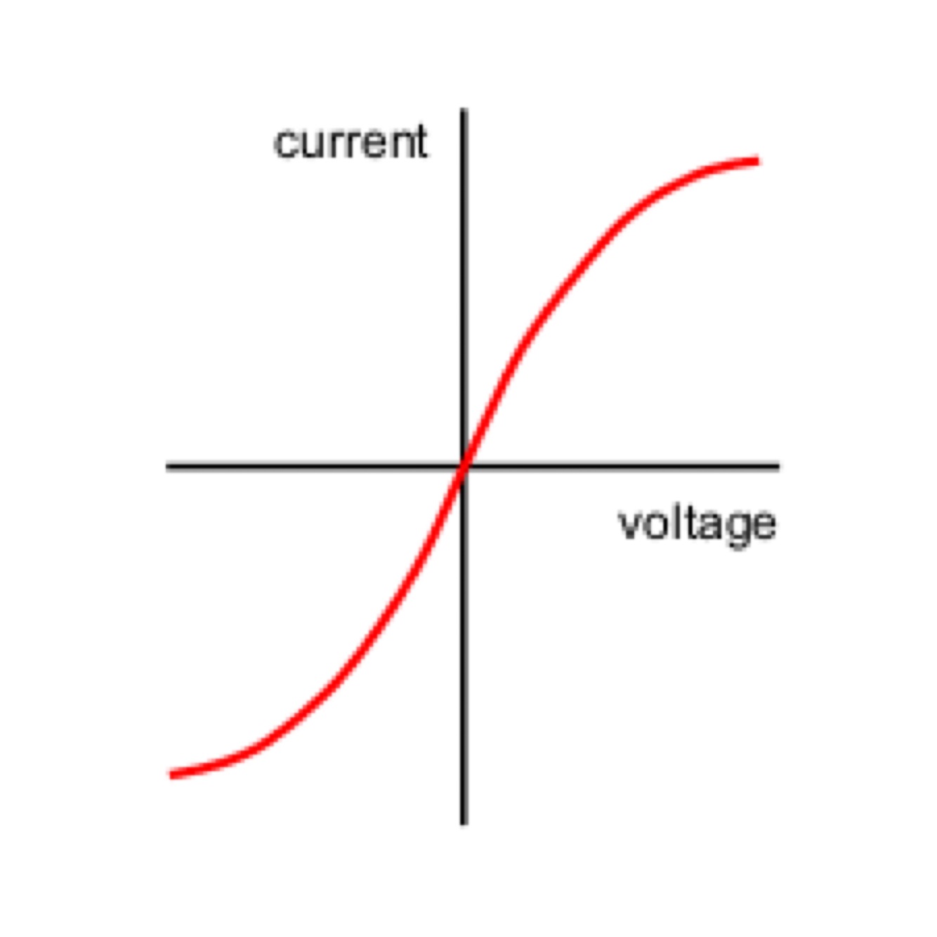 Because the filament heats up when a current flows through it, causing the resistance to increase