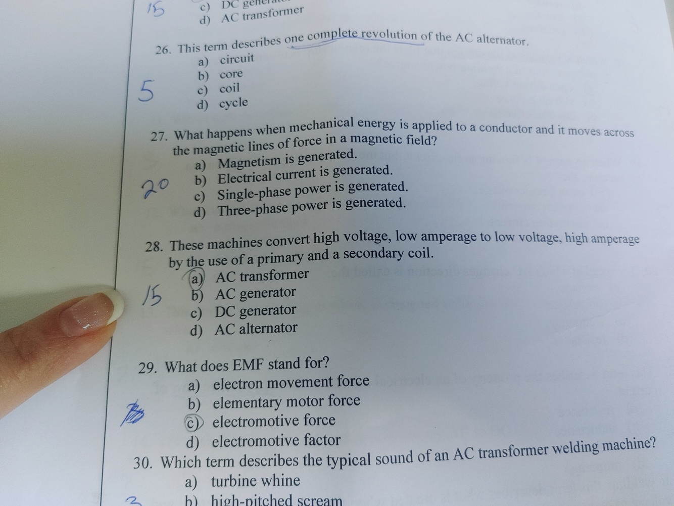 Converts high voltage, low amperage. to low voltage, High amperage use of primary and secondary coil
