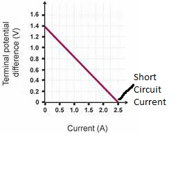 From the graph, how can you calculate the internal resistance of the cell?