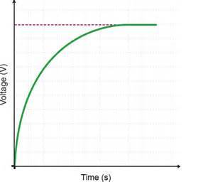 Describe the shape of a graph of voltage across capacitor against time for charging a capacitor.