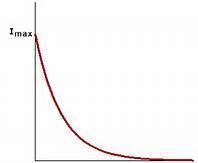 Describe the shape of a graph of current in a capacitance circuit against time for charging a capacitor.