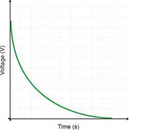 Describe the shape of a graph of voltage across capacitor against time for discharging a capacitor.