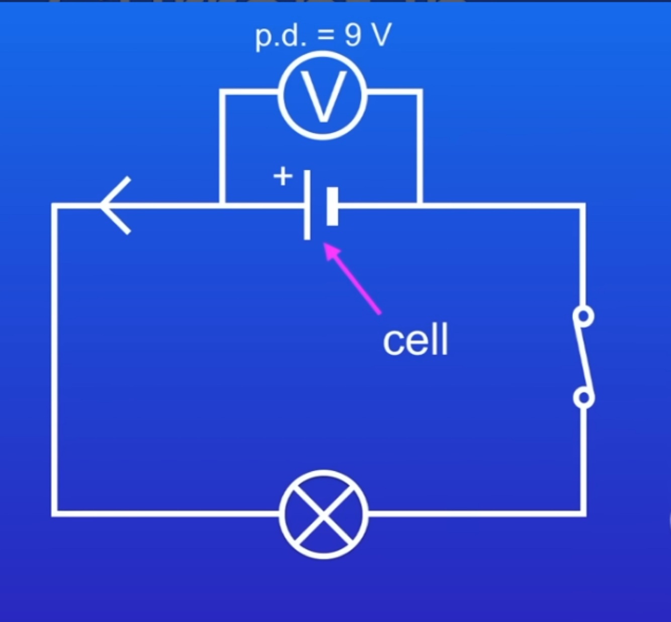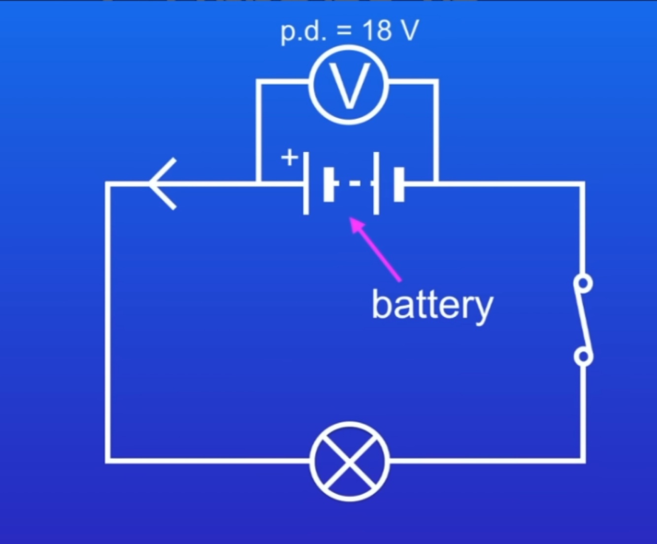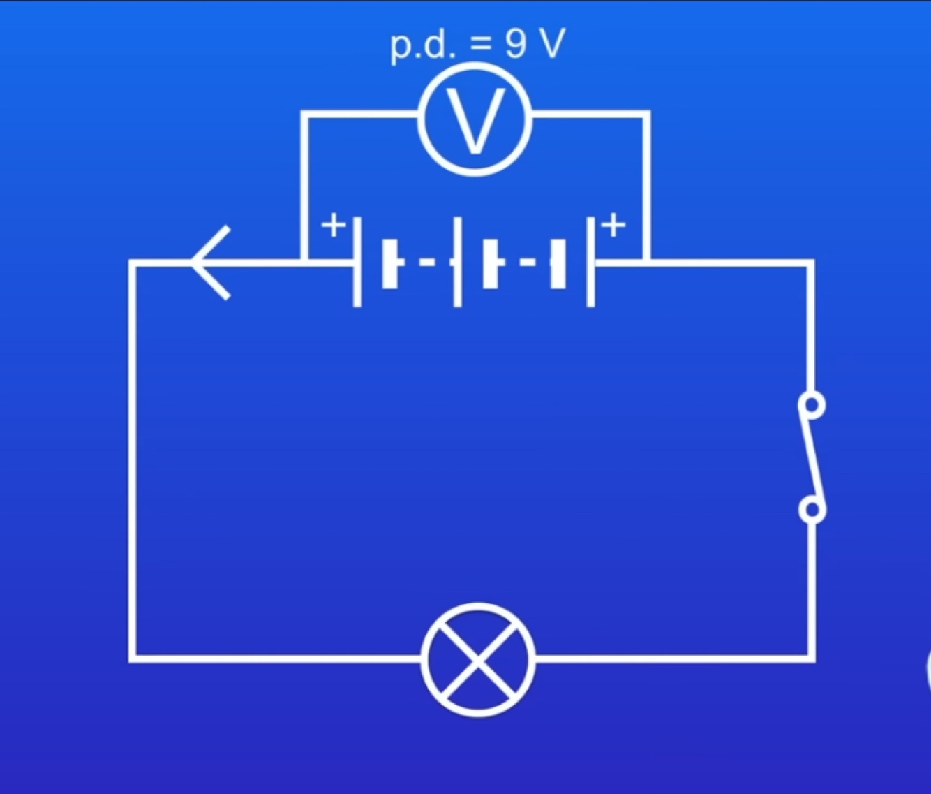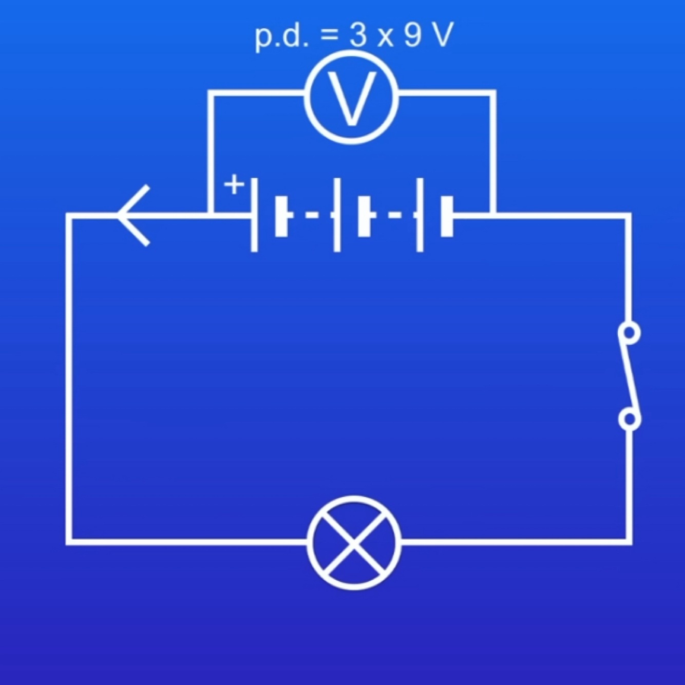 If we connected two of these cells in series the potential difference adds up to make a P.D of 18V.