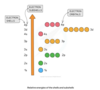 electrons move rapidly around the nucleus in energy shells