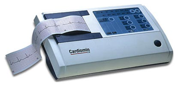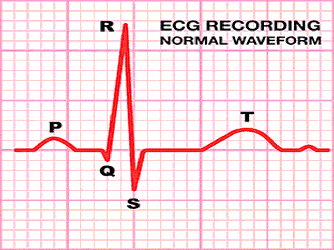 Recording potential changes of volttage that are generated by the heart during the cardiac cycle and transmitted to the surface of the body