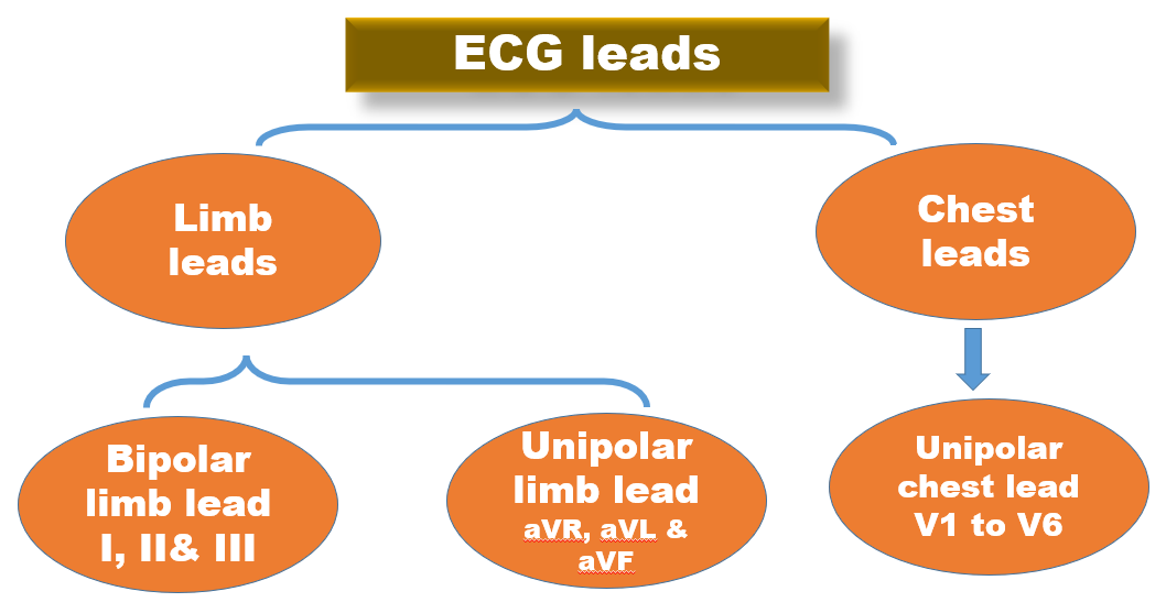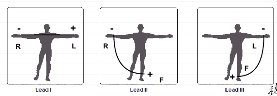 Bipolar limb leads (use two active electrodes): Lead I, Lead II, Lead III