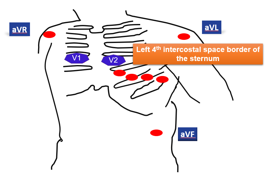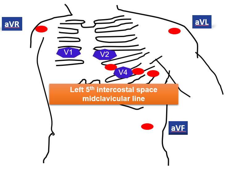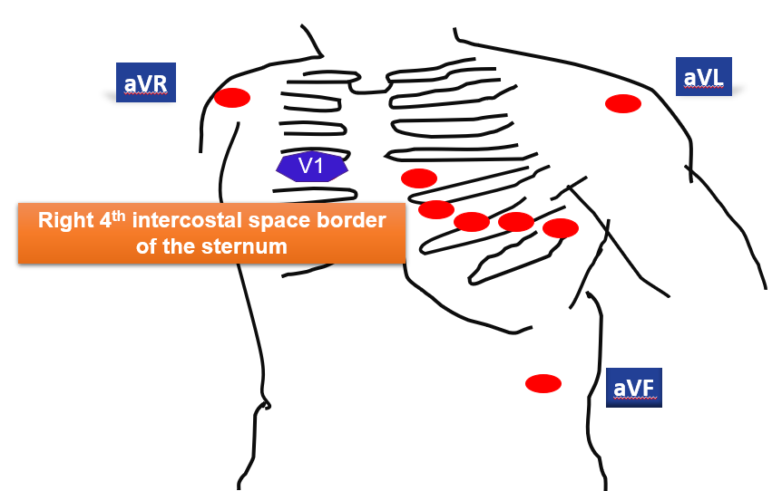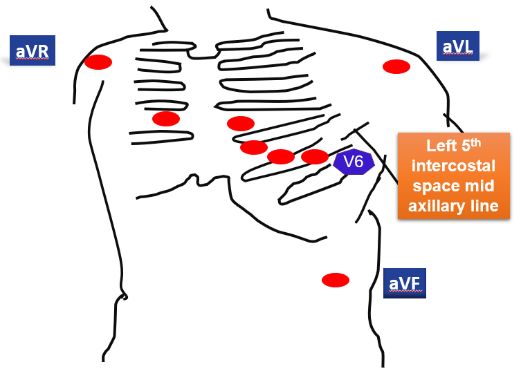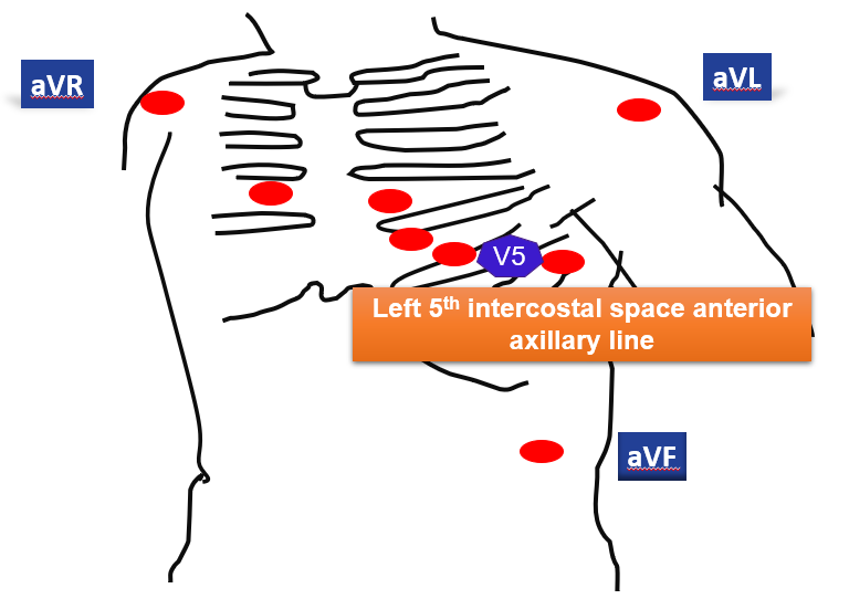 Unipolar augmented limb leads (Use one electrode): aVR, aVL, aVF