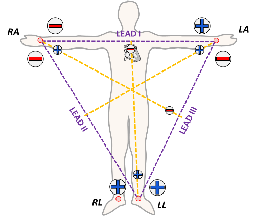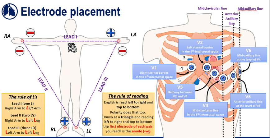 where do the electrodes go on an ECG?