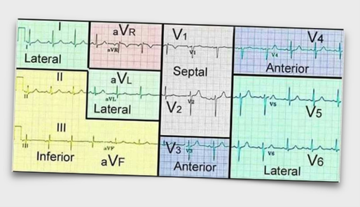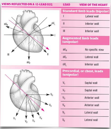 on an ECG which section corresponds to which view of the heart?