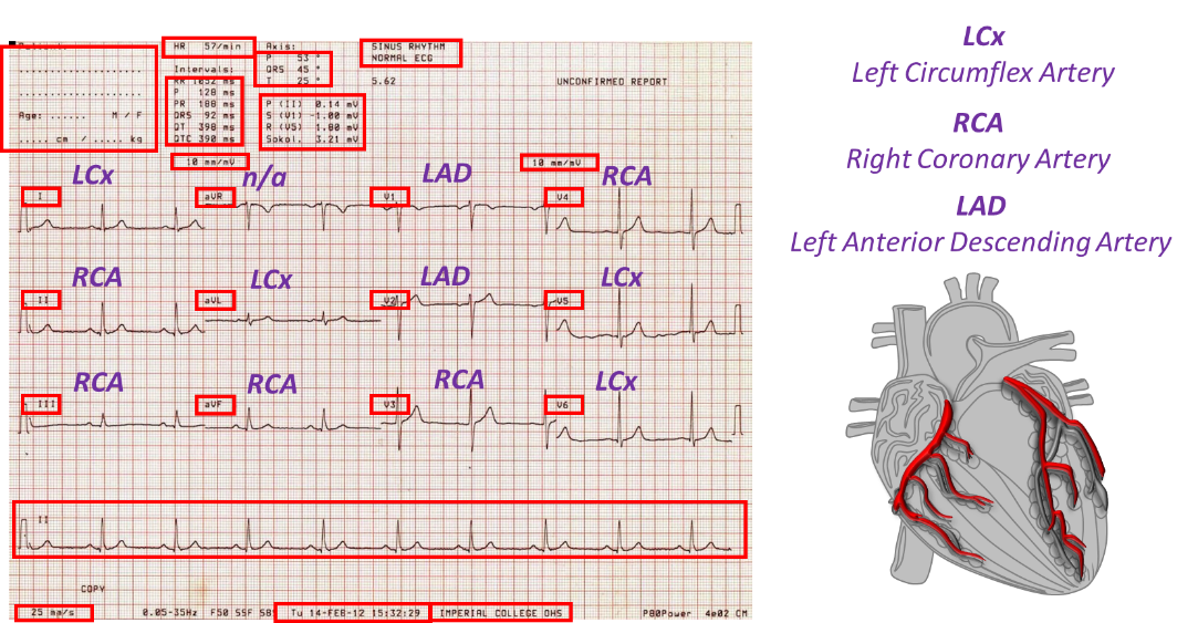 which artery is measured in each section of an ECG?