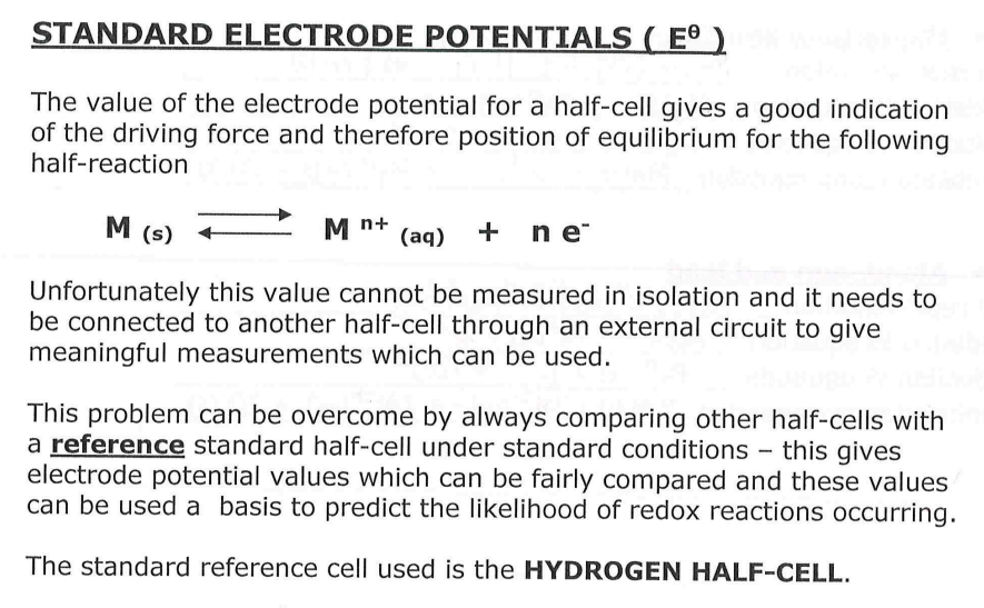 STANDARD ELECTRODE POTENTIALS ( E® )
