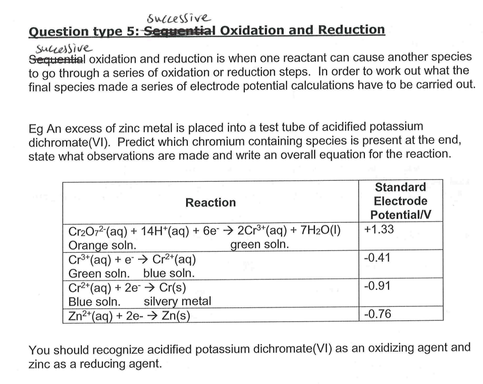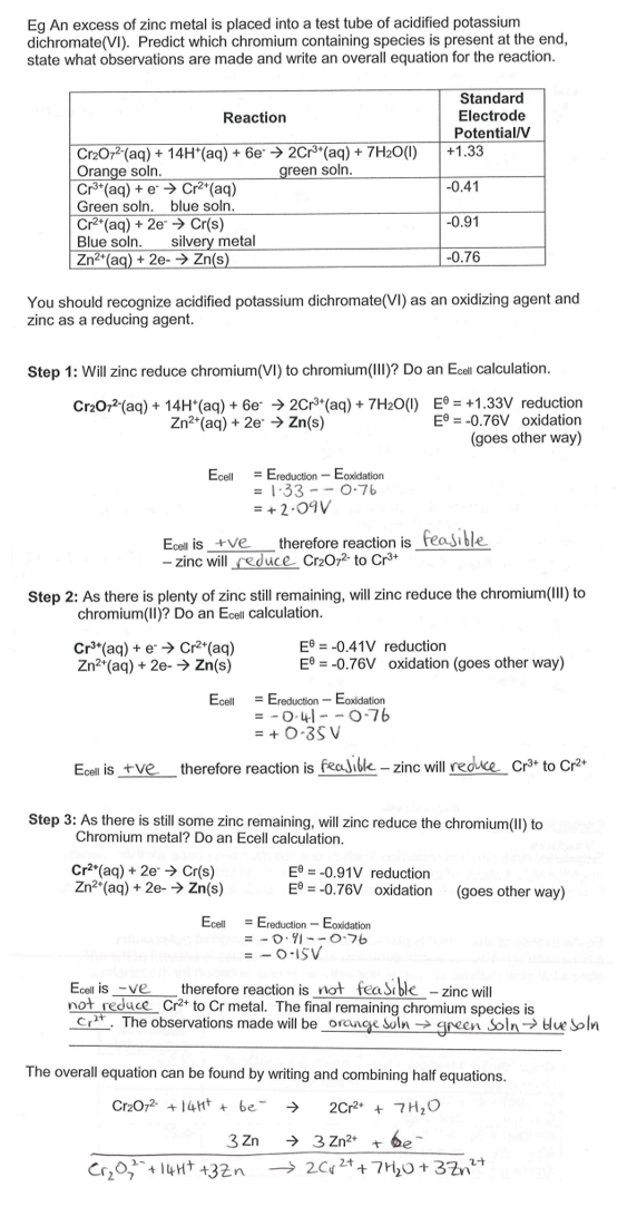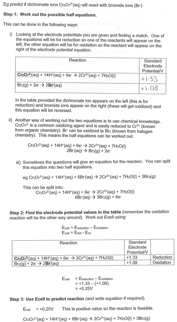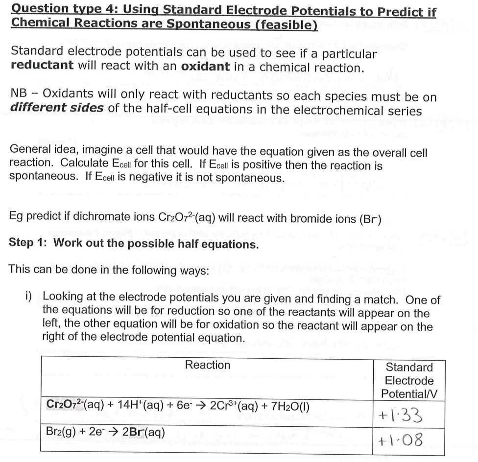 Question type 4: Using Standard Electrode Potentials to Predict if Chemical Reactions are Spontaneous (feasible)