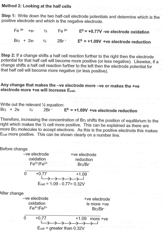 Increasing the concentration of Fe? shifts the position of equilibrium of the overall equation to the right. Therefore, Ecel will increase
