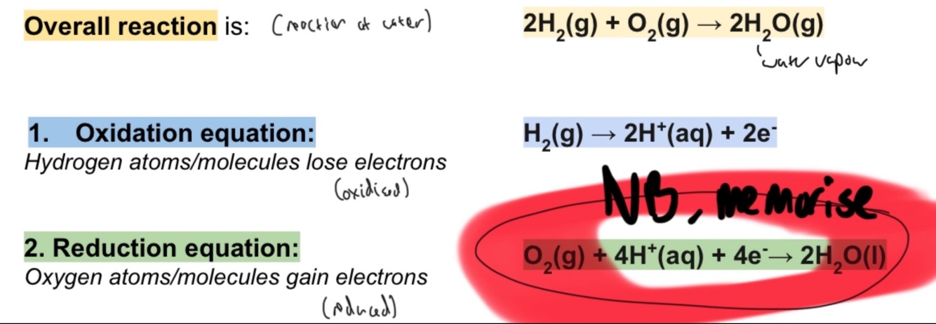 Hydrogen and oxygen react in a hydrogen-oxygen fuel cell to produce electricity, water and small amounts of heat. The electrochemical converts chemical energy to electricity which is useful in cars, spacecraft and is being developed for portable electronic devices