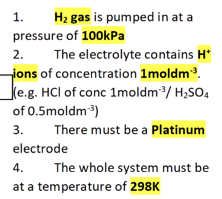 Conditions for standard hydrogen electrode? (4)