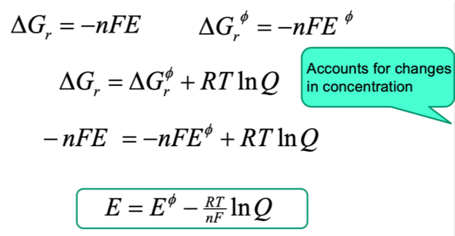 lnQ= accounts for change in concentration