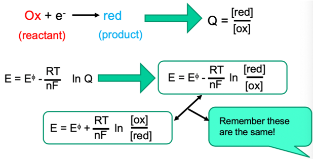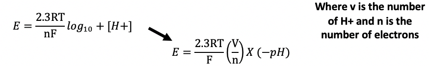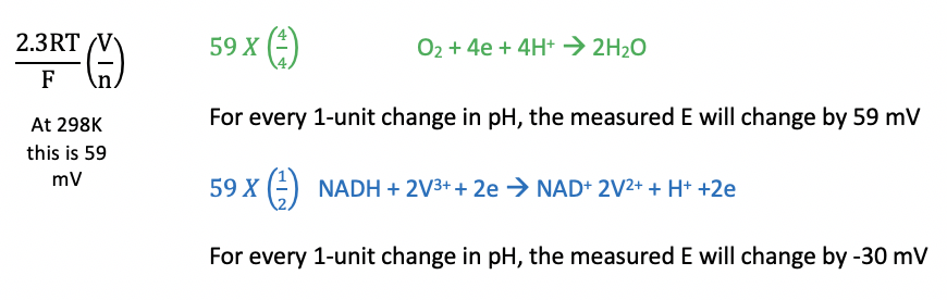 The ratio of H+ to electrons, determines how much E will be effected by changes in pH, quanitfy this
