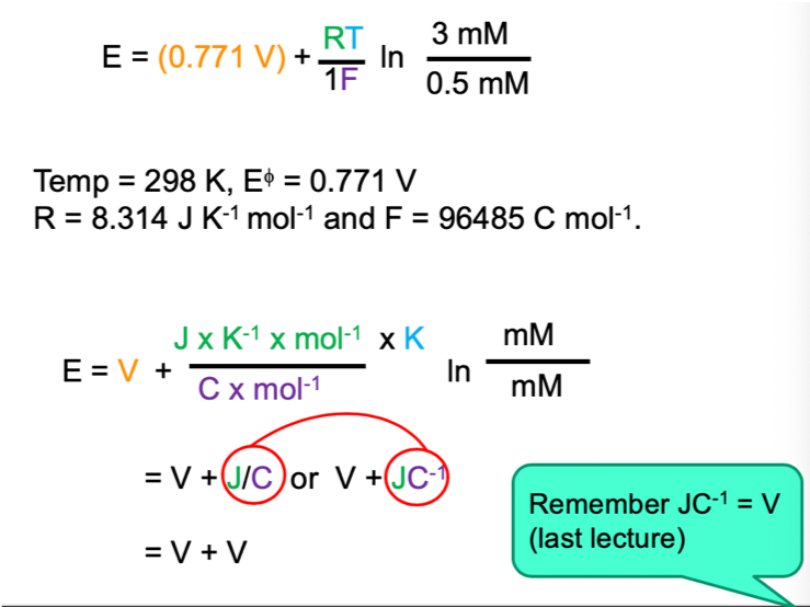 What should the units for the nernst eqaution be?