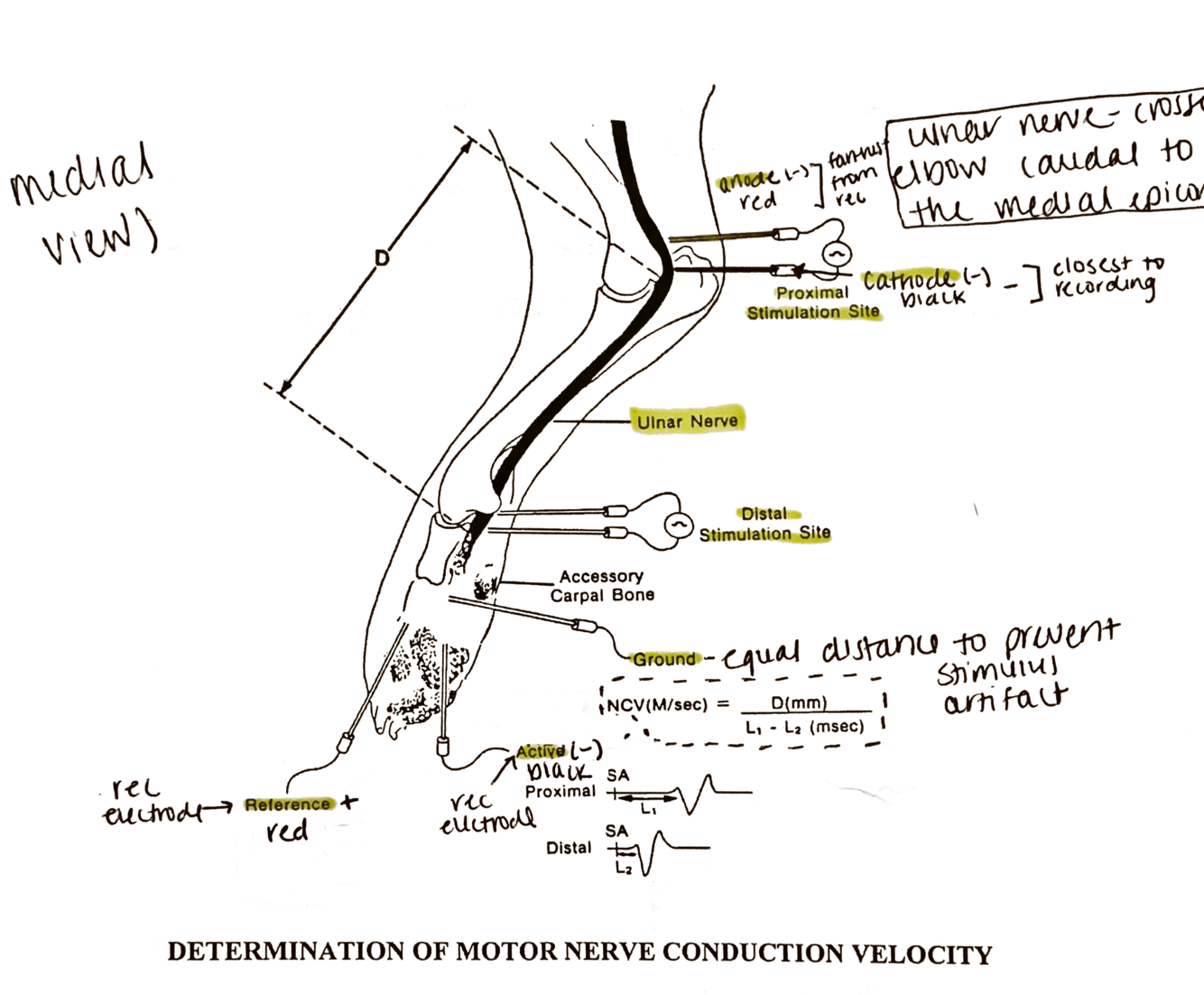 The ground electrode should be between the stimulating and recording electrodes - important to diminish stimulus artifact