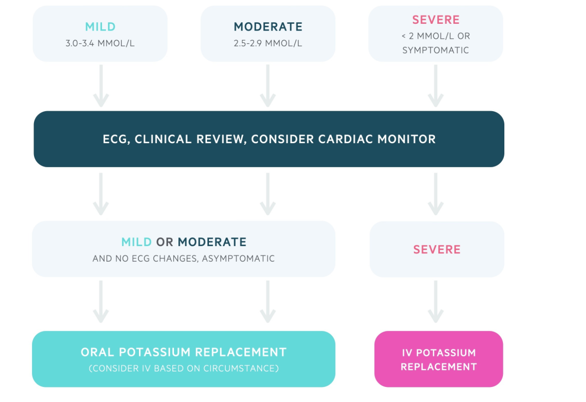 All patients with moderate-to-severe hypokalaemia should have an ECG.