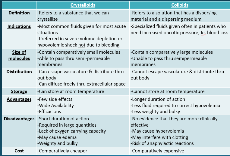 Crystalloid vs colloid overview