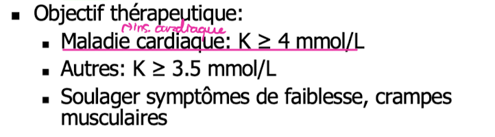 Quels sont les objectifs thérapeutiques lors de traitement d’hypokaliémie?