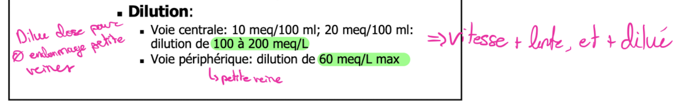 Quelle est la vitesse de perfusion du potassium par voie IV?