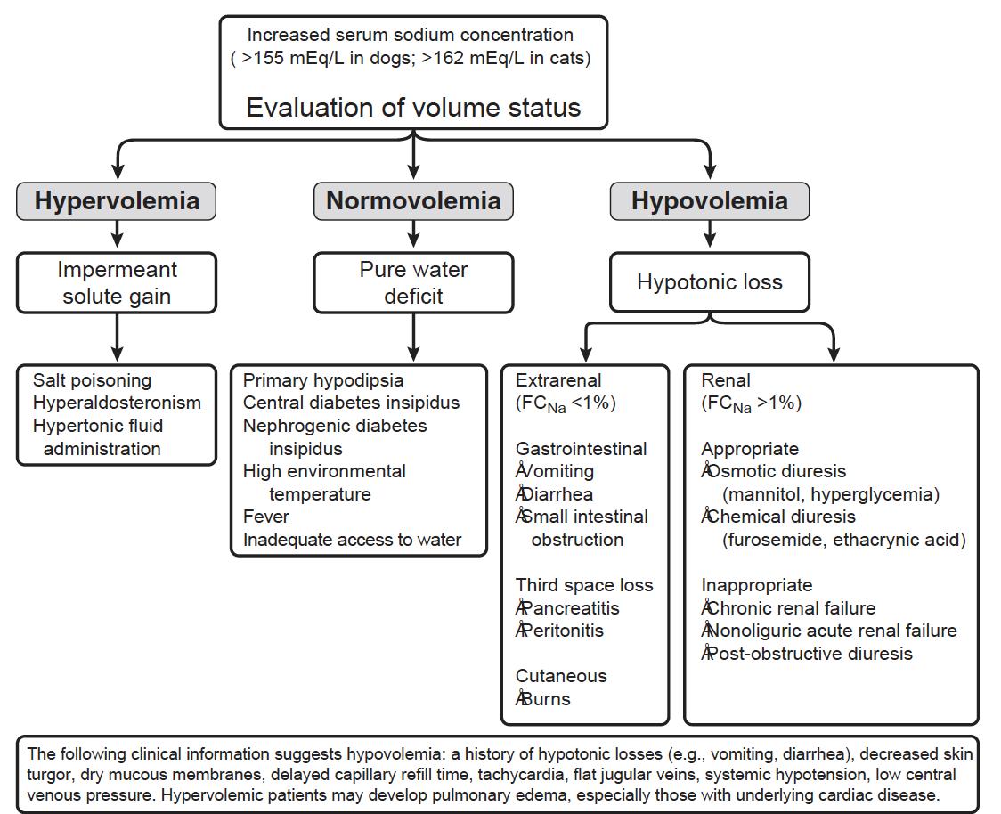 What are the three big categories of causes for hypernatremia. List 3 examples for each categories.