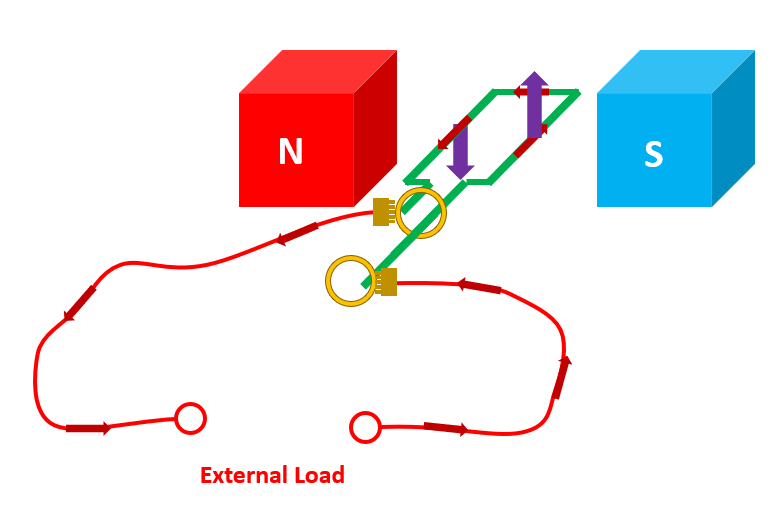 Which way does the current act in this coil and why?