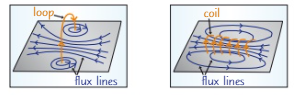 for a loop of wire, the field lines form a that field is donut-shaped - whilst the field lines for a solenoid (coil with lots of loops and with length) forms a field that is similar/the same to the field of a bar magnet