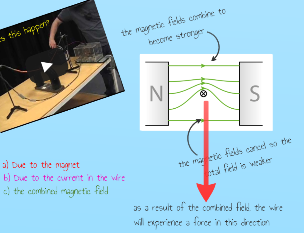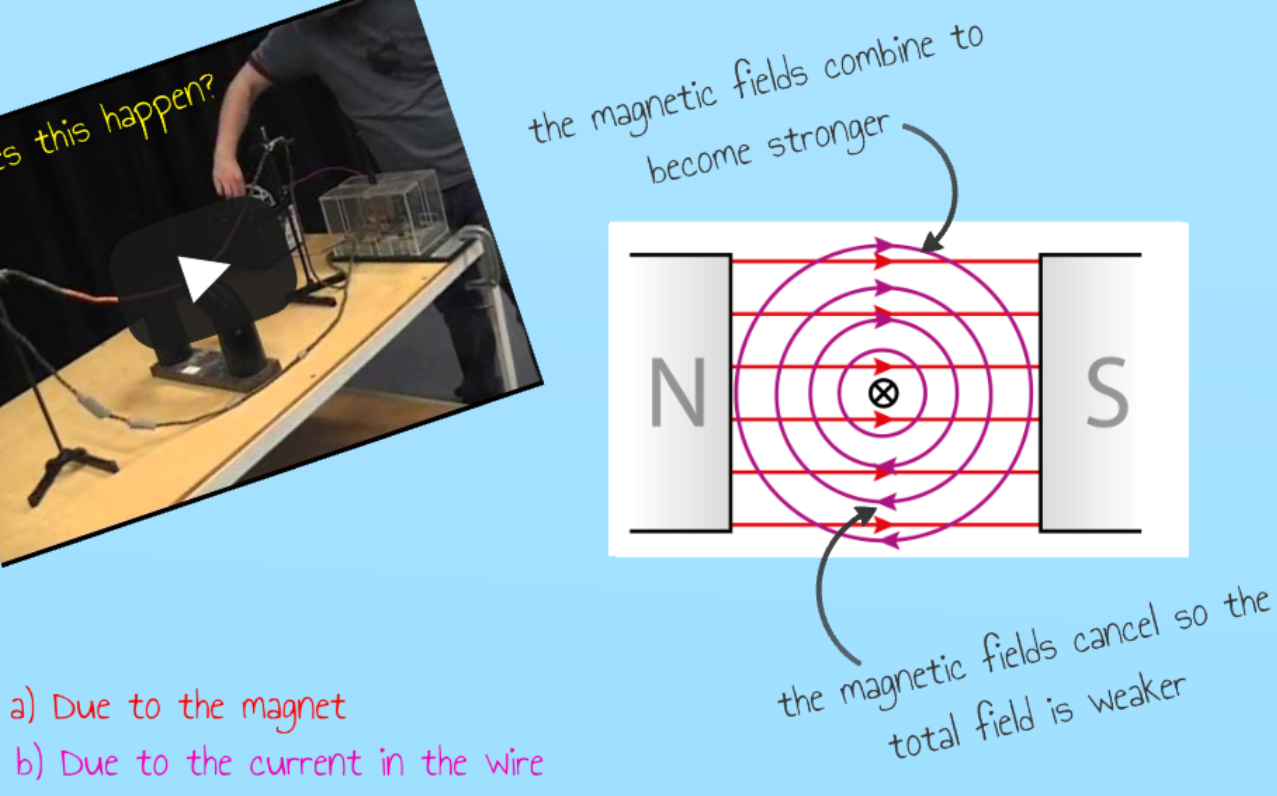 ⋅ if you put a current-carrying wire into an external magnetic field (eg, between two magnets), the field around the wire and the field from the magnets are added together