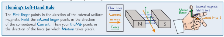⋅ the direction of the force is always perpendicular to both the current and the magnetic field (the direction of the force is given by fleming’s left hand rule)