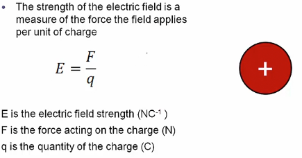 the strength of the electric field is a measure of the force the field applies per unit of charge