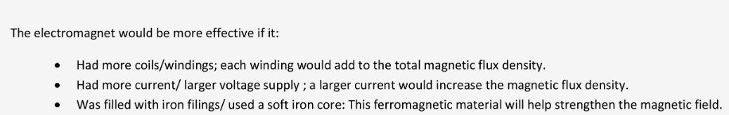 LIST three changes that can make an electromagnet More Effective