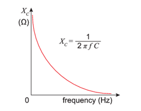 What dos this tell us about the capacitive reactance of the capacitor as freqnecy increases?