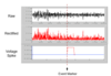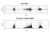 Voltage signal (in blue on right) has both positive and negative voltages (positives spike will cancel negatives when we take a mean for raw EMG signals) we cannot just take the raw data or we would get nothing.