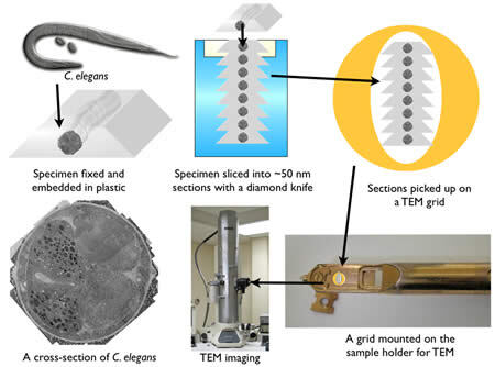 1 millimeter, then reduced to 0.5 millimeters to cut a section thickness from 50-100 nanometers.