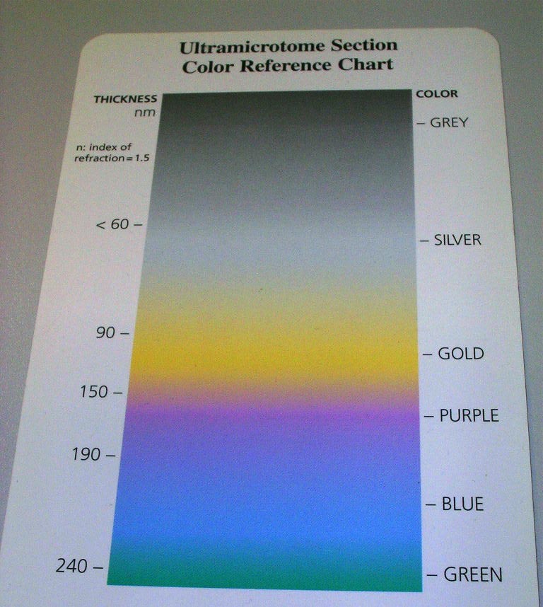 The color reflected from both the waterbath and the section gives an interference color which will tell you the thickness of the section.