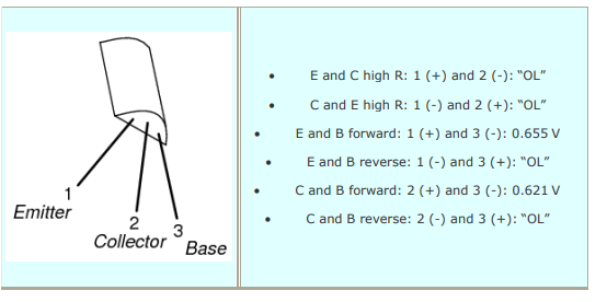 Checking a good transistor with a digital multimeter between C & E, it should read=