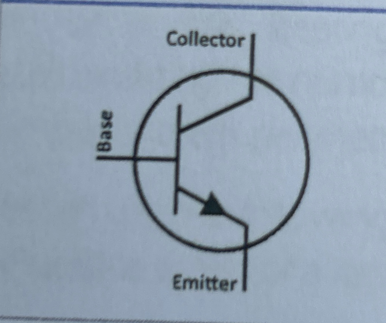 Transistor - is a tiny electronic switch, it has three connections. When a small voltage runs through the base connection it turns it on letting a larger current flow through the connector and out the emitter