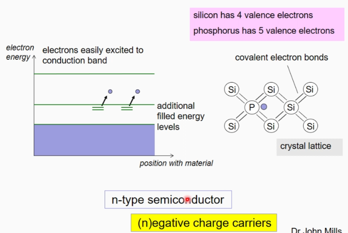 This is when the type-4 silicon (has 4 valence electrons in the valence shells) is bonded with a type-5 elements (like phosphorus) in a crystal lattice structure.