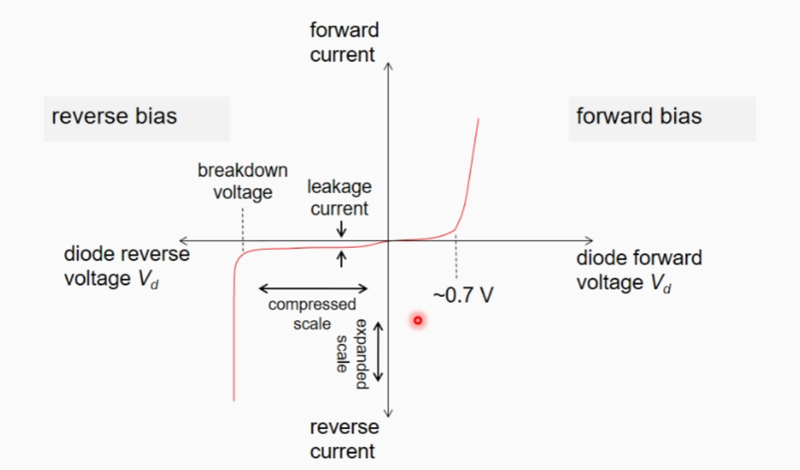 The diode has a small resistance to current flow in one direction (forward bias) and a very high resistance to current flow in the other direction (reversed bias).