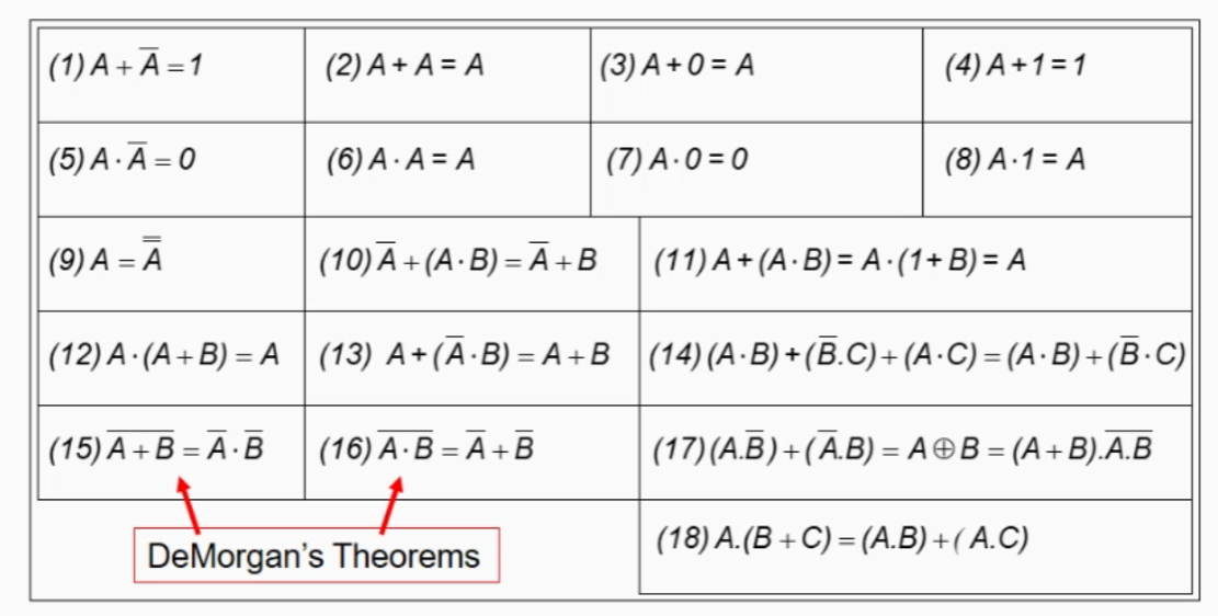 List as many Rules of Boolean algebra as you can remember.