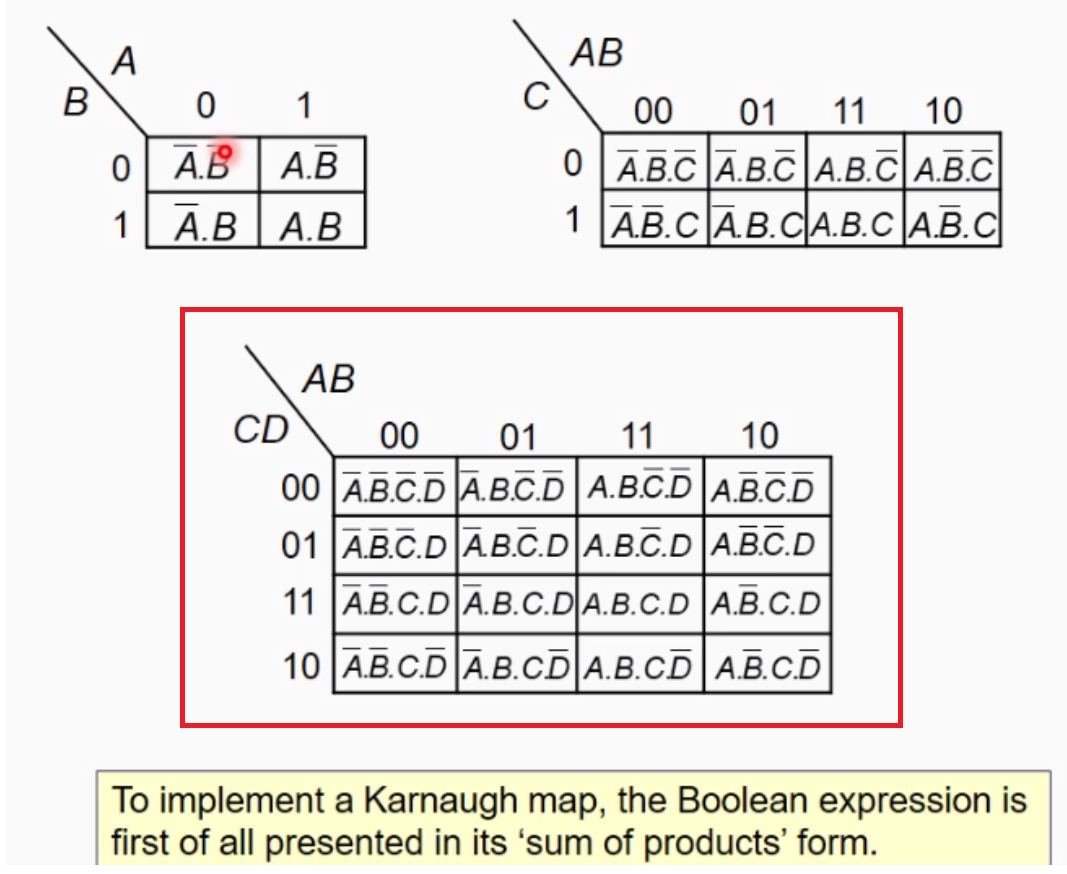 They are used to work out the simplist form of a ‘sum of product’ function without doing Boolean algebra.