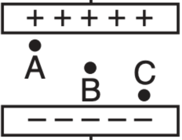 Which charge experiences the strongest electric field?