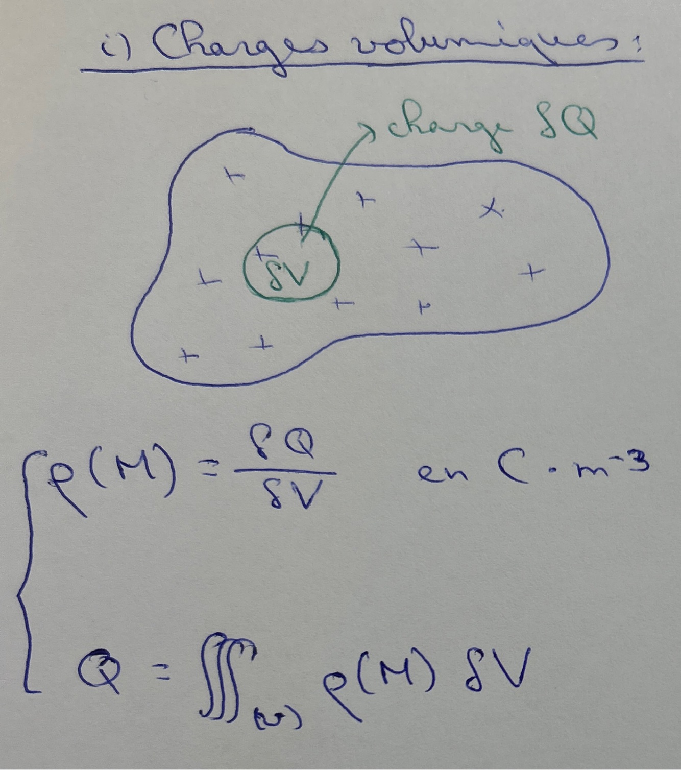 Définir la charge volumique et donner la formule générale de la charge portée par un volume v