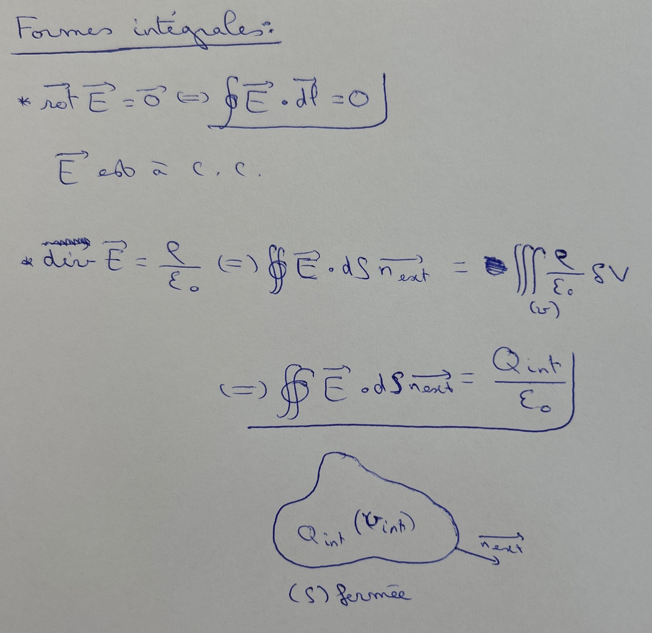 Donner les formes intégrales des équations de Maxwell électrostatiques