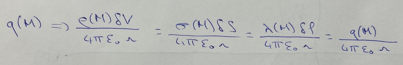 Exprimer de quatre manières différentes le champ de potentiel créé par une charge q(M)