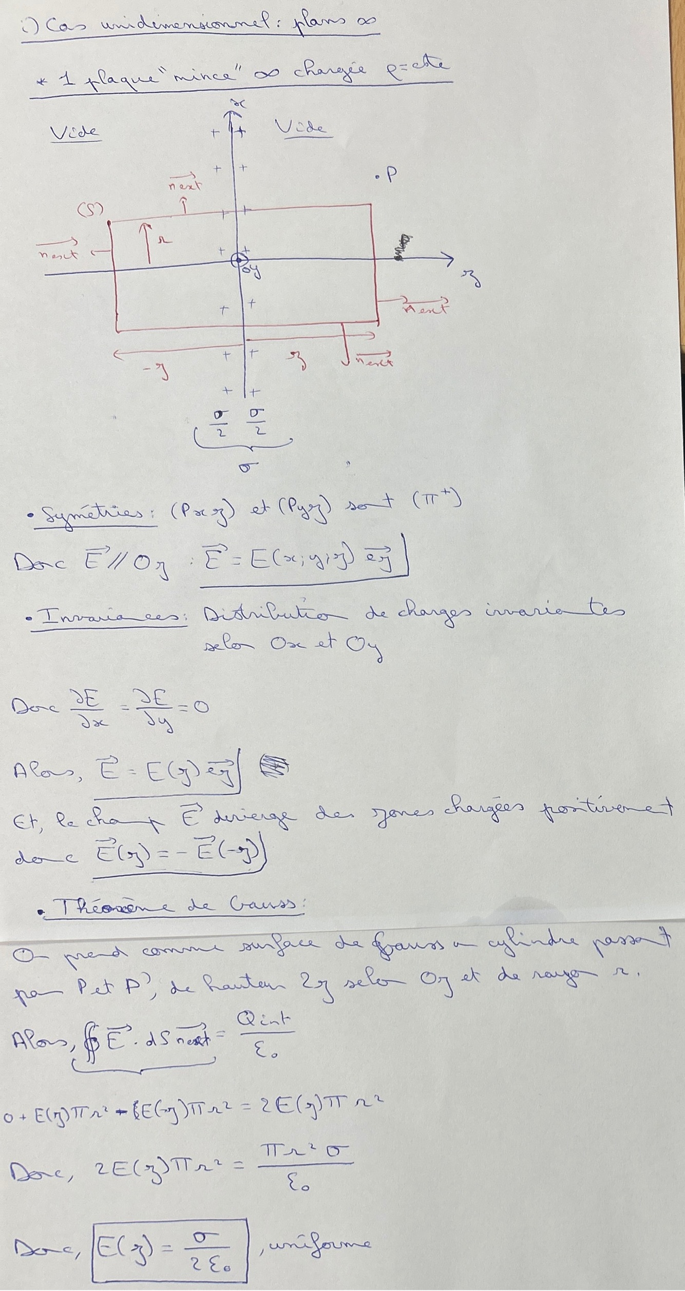 Il y a une discontinuité de E de σ/ε0 à la traversée de la surface chargée