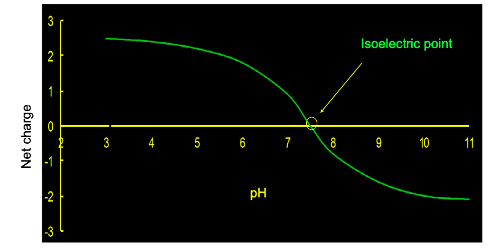 Proteiner kan inte röra sig i ett elektriskt fält när de nått sin isoelektriska punkt pga att de då är oladdade.